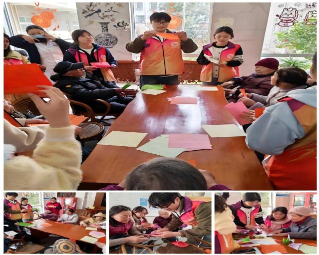 在随后的手工环节,老人们跟随志愿者的讲解,小心翼翼地折叠、翻转彩纸。同学们耐心指导,不时伸手示范,老少协作,其乐融融。不一会儿,一只只千纸鹤、一艘艘小纸船在手中诞生,这些看似简单的作品,凝聚着两代人的默契与情感,成为这个春日午后的珍贵纪念。