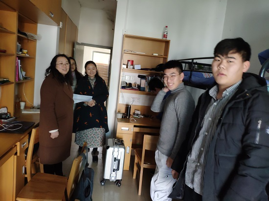 24日中午,朱燕副书记和辅导员孙瑛、纪孟含走访学生公寓。走访过程中,老师们与学生亲切交流,询问新学期规划、了解寝室的卫生状况等,鼓励学生制定好人生规划,以饱满的精神迎接新学期的学习和生活。交流中朱燕副书记指出在宿舍生活中要发挥学生干部的作用,在学生干部以身作则的同时扩大自身的影响力,树立在公寓中的生活学习的榜样,从而实现同学们自觉接受管理,积极自我管理的良好效果。