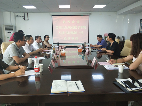 9月19日,苏州卫生职业技术学院纪委书记陈斌等一行来我校进行工作交流。我校党委副书记苏小冬、纪委书记于林惠、组织部长高宏彦及纪委办同志接待了来宾。