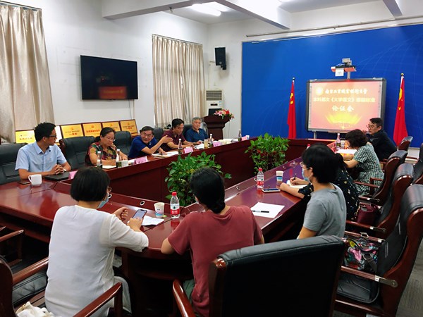 7月30日上午首先召开《大学英语》课程标准论证会,南京工业大学外国语言文学学院副院长、中国英汉语比较研究会外语教育技术专业委员会理事胡元江教授和金陵科技学院外国语学院副院长张志刚教授到会指导。在教研室主任张秀芹汇报、解读新大纲初稿后,两位专家首先就我国大学英语教学的总体状况、指导性政策、发展趋势以及本科职业教育与普通本科大学英语教学的区别等内容进行了说明,然后对我校《大学英语》本科课程新标准进行了细致、认真的研究与指导,提出了宝贵的意见与建议。