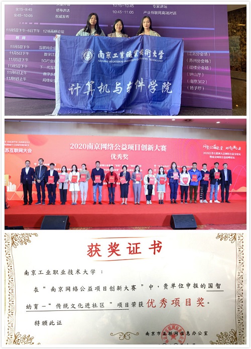 近日,计算机与软件学院应邀参加“网聚公益能量 助力全面小康”——2020(第八届)江苏互联网大会网络公益分论坛暨南京网络公益高峰论坛。江苏省委网信办副主任胡连生,南京市委宣传部副部长、网信办主任吴曦,及南京市通管办、南京市妇联、南京市民政局相关负责人等出席,社会公益团体及爱心人士等共同参与了此次活动。经过激烈的角逐,计算机与软件学院团总支申报的“‘国智幼育’传统文化进社区”项目在今年的“南京网络公益项目创新大赛”中获得优秀项目奖。