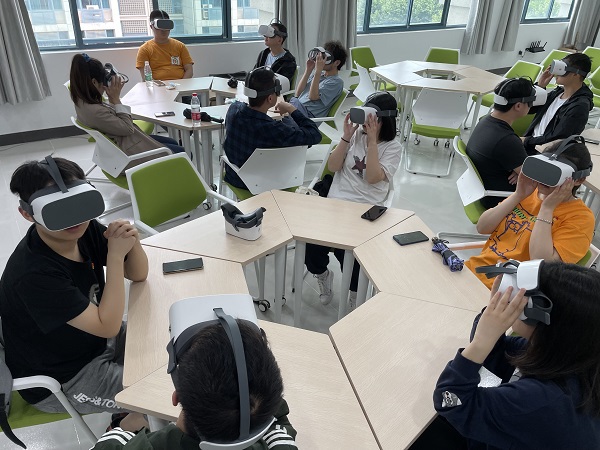 在思政VR教室里,周老师亲自为同学们示范教学VR设备的使用以及注意事项,通过课堂讲解+设备体验的形式,帮助同学们融入到红军长征“翻雪山”、“过草地”的场景之中。同学们有的感受到巍巍雪山的悬崖峭壁,有的忍不住伸手握住即将“跌落”草地泥沼的红军战士……一段段红色之旅让大家深切地感受到我们党革命的勇气和奋斗的艰辛。