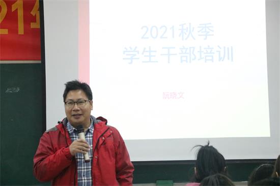 最后,阮院长激励了在场的每一位团学干部,希望每位团学干部坚定理想信念,不断扎实工作作风。本次团学干部培训班的成功举办,对于强化团学干部的责任意识、担当意识有着重要的意义。为我院团学工作开创新局面提供了强有力的思想引领和保障。