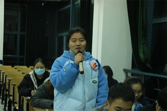 接着,她围绕“学生干部的作用”这一方面,深入浅出地阐述了学生干部的重要性。马老师与我院主席团成员、班长代表进行互动交流,提问“为什么要当学生干部”,从他们的回答中指出重要性。她将学生干部的作用简单地总结为四点。第一,学生干部是学校与学生之间的桥梁与纽带,有利于学校与学生间的双向互动;第二,学生干部拥有榜样作用,对周围学生有着不可替代的示范作用;第三,学生干部拥有团结集体的作用,有利于提升组织的凝聚力与向心力。第四,学生干部发挥着服务奉献的作用,急同学之所急,帮同学之所需,时时为大家着想,力所能及地为同学排忧解难。