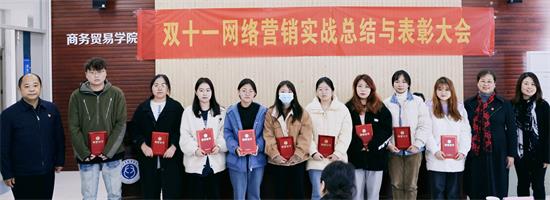 2021年12月21日下午,商贸学院举办双十一网络营销实训总结表彰大会,合作企业博西家电电器(中国)有限公司电商导购总监周丽娟、能力发展经理笪敏敏、以及两位培训师亲临会场,学校党委常委、纪委书记、省派驻监察专员于林惠、学院党政班子成员以及电商专业骨干教师和全体参训同学共同出席会议,校企双方对实训进行了总结,并对43名优秀学员给予了表彰。